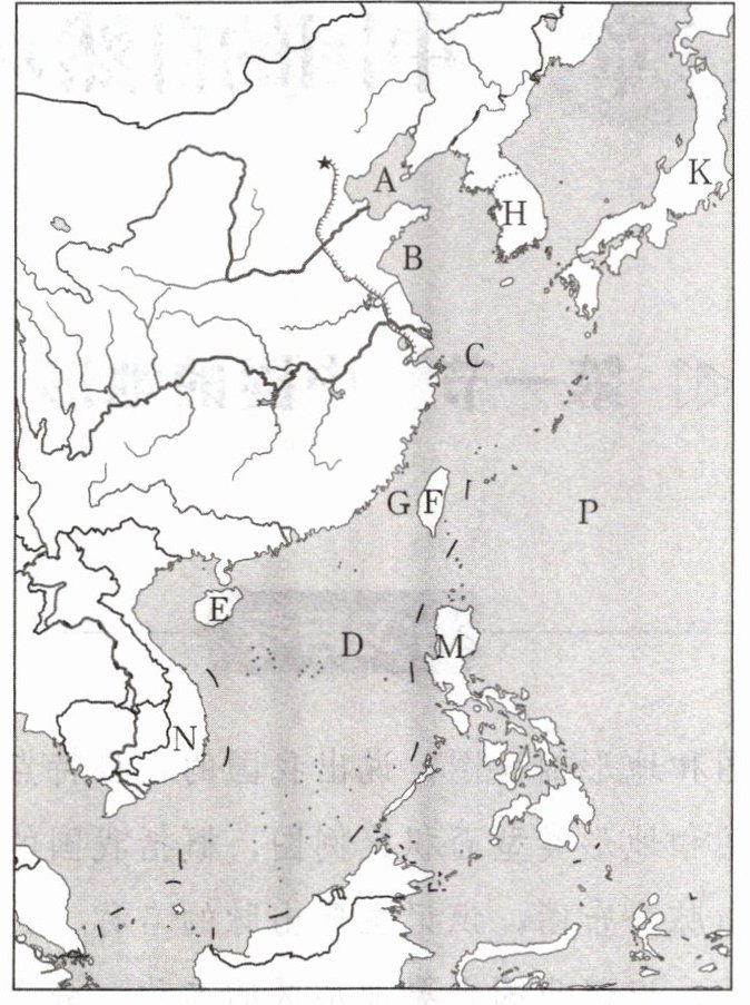洋。(2)图中 K、H、M 是与我国隔海相望的国家,它们分别是: