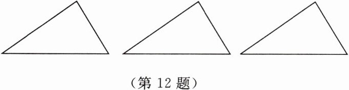 12. 校园里有一块三角形的草地,学校打算将这块地分成面积相等的四部分,种上不同颜色的花。请你在如图所示的图形中设计三种不同的划分方案。