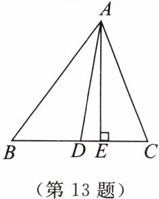 13. 如图,已知 AD 和 AE 分别是△ABC 的中线和高,BD = 5,△ABD 的面积是 15,求 AE 的长度以及△ABC 的面积。