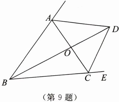 9. 如图,在△ABC 中,∠ABC = 50°,∠ACB = 60°,点 E 在 BC 的延长线上,∠ABC 的平分线 BD 与∠ACE 的平分线 CD 相交于点 D,连接 AD,下列结论不正确的是(