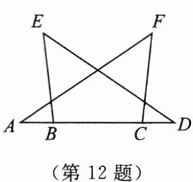 12. 如图,已知△ACF≌△DBE,AD= 9cm,BC= 5cm,则AB的长为