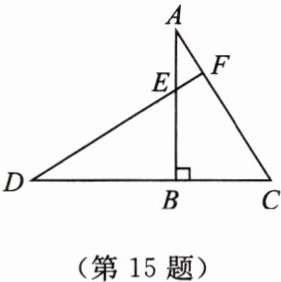 15. 如图,△ABC≌△DBE,AB⊥BC,DE的延长线交AC于点F。试判断DF与AC的位置关系,并说明理由。
