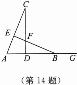 14. 如图,△ABE≌△ACD,∠C= 20°,AB= 10,AD= 4,点G为AB延长线上一点,求∠EBG的度数和CE的长。