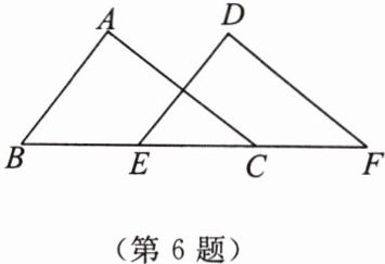 6. 如图,点$E$,$C在BF$上,且$BE = CF$,$AB = DE$,$AC = DF$,$\angle A与\angle D$相等吗?请说明理由。