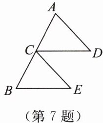7. 如图,$C是线段AB$的中点,$AD // CE$,$\angle B = \angle ACD$。$\triangle ACD与\triangle CBE$全等吗?请说明理由。