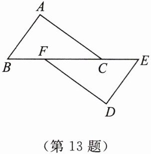 13. 如图,点$F$,$C在BE$上,$AC// DF$,$AB// DE$,$BF = CE$。$AC与DF$相等吗?请说明理由。