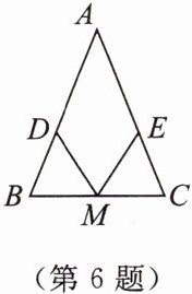6. 如图,在$\triangle ABC$中,$AB = AC$,$M是BC$的中点,$D$,$E分别是AB$,$AC$边上的点,且$BD = CE$。$MD与ME$相等吗?请说明理由。