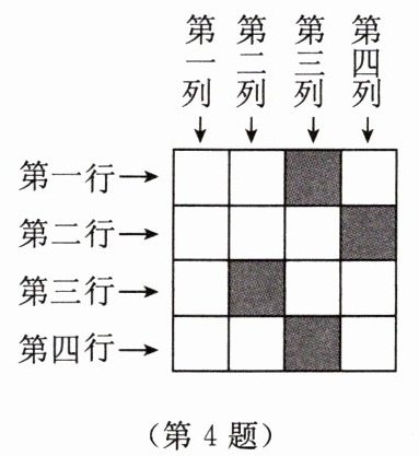 4. 小明将一正方形纸片均分成16个全等的小正方形,如图所示的是他将其中四个小正方形涂成灰色的情形。若小明想再将一小正方形涂成灰色,使此纸片上的灰色区域成轴对称图形,则此小正方形的位置为(