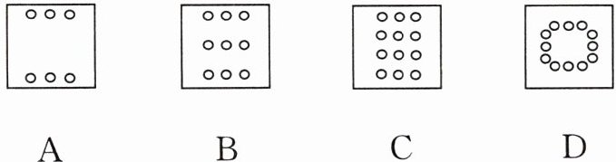 3. 如图,将一张正方形的纸片对折两次,然后在上面打3个洞,则纸片展开后的图是(
