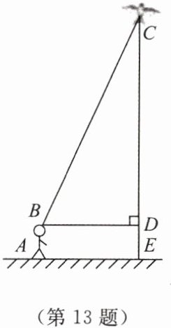 13. 身高$1.6m$的小明($AB$)想利用勾股定理测得图中风筝的高度$CE$,已知他测得$BD的长度为25m$,并根据手中剩余线的长度计算出风筝线$BC的长为65m$。求风筝的高度$CE$。