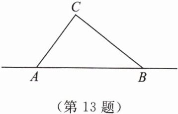 13. 台风是一种自然灾害,有极强的破坏力。如图,台风中心沿东西方向由点$A向点B$移动,已知点$C$为一海港,且$AC = 300km$,$BC = 400km$,$AB = 500km$,台风中心的移动速度为$25km/h$。经测量,距离台风中心$260km$及以内的地区会受到影响。海港$C$会受到台风影响吗?若会受到台风影响,请求出受影响的时间有多长;若不会受到台风影响,请说明理由。