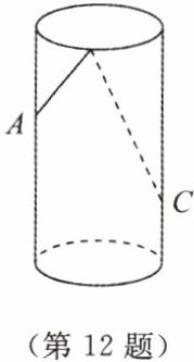 12. 如图,圆柱形玻璃杯高为$12cm$,底面周长为$18cm$,在杯内离杯底$4cm的点C$处有一滴蜂蜜,此时一只蚂蚁正好在杯外壁,离杯上沿$4cm与蜂蜜相对的点A$处,则蚂蚁到达蜂蜜处的最短路程为多少?