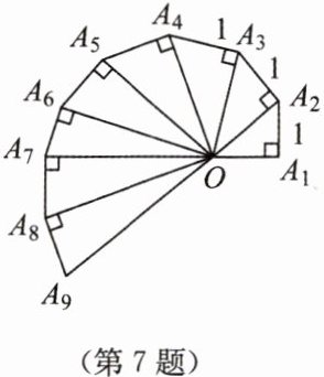 7. 如图所示的是第七届国际数学教育大会的会徽,它的主题图案是由一连串如图所示的直角三角形演化而成的。若其中第一个直角三角形$OA_{1}A_{2}$为等腰三角形,且$OA_{1}= A_{1}A_{2}= A_{2}A_{3}= A_{3}A_{4}=… =A_{8}A_{9}= 1$,则$OA_{9}$的长是
