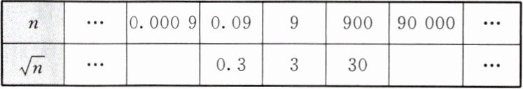 13. 求一个正数的算术平方根,并用整数或小数表示,有些数可以直接求得,如 4 的算术平方根是$\sqrt{4}= 2$,有些数则不能直接求得,如 5 的算术平方根是$\sqrt{5}$,但可以通过计算器求得,还有一种方法是通过一组数的内在联系,运用规律求得,请同学们观察下表:
