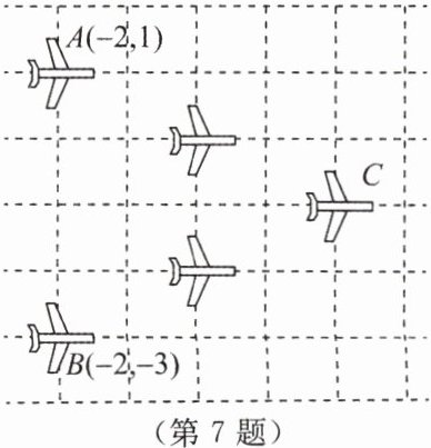 7. 如图所示的是轰炸机机群的一个飞行队形,如果最后两架轰炸机的平面坐标分别是 $ A(-2,1) $ 和 $ B(-2,-3) $,那么第一架轰炸机 $ C $ 的平面坐标是(