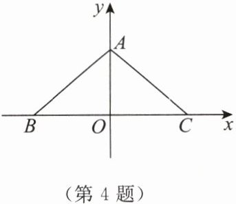 4. 如图,等腰三角形 $ ABC $ 的腰长为 $ \sqrt{2} $,底边 $ BC = 2 $,以 $ BC $ 所在的直线为 $ x $ 轴,$ BC $ 的垂直平分线为 $ y $ 轴建立如图所示的直角坐标系,则 $ B $(