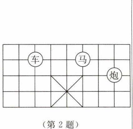 2. 如图,已知棋子“车”的坐标为 $ (-2,3) $,棋子“马”的坐标为 $ (1,3) $,则棋子“炮”的坐标为(