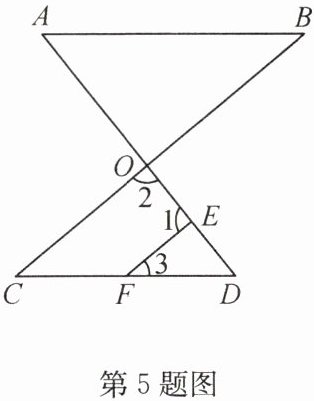 5. 如图,AD交BC于点O,∠C = ∠3,∠2 = 80°,∠1 + ∠3 = 140°,∠A = ∠D,则∠B的度数是(