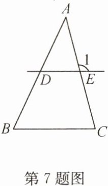 7. 如图,在△ABC中,直线DE分别交AB、AC于点D、E,DE // BC,∠1 = 105°,∠B = 65°,则∠A的度数是(