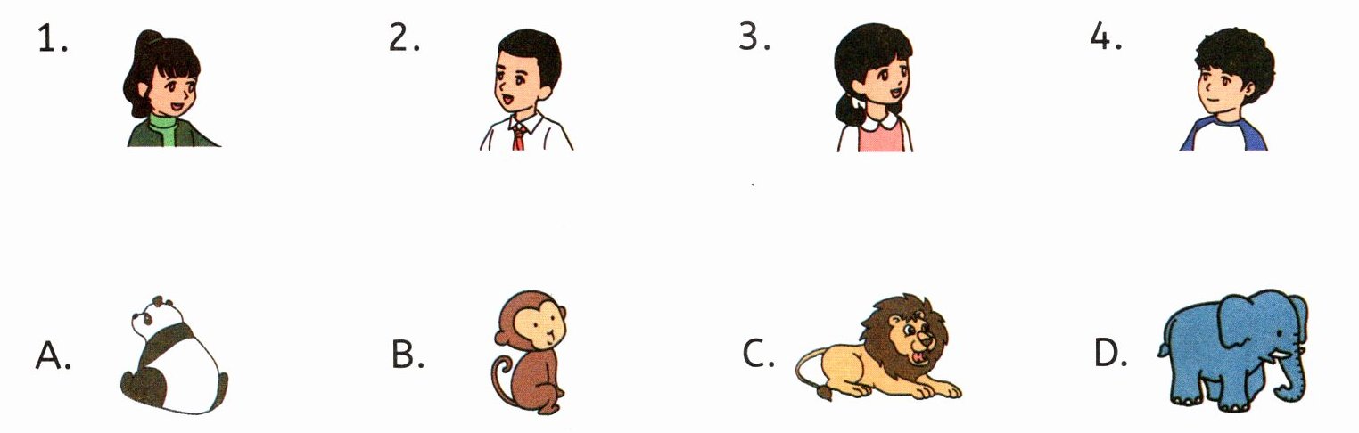 任务一:阅读对话,将小朋友们和他们看到的动物连线。