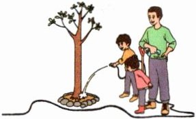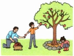 |E. The apples are big. Let's pick apples.|F. We feed (施肥) the plants and they grow.|