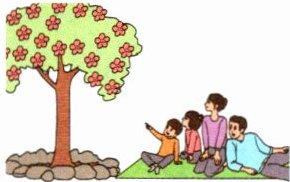 3.图意:一家人在树的旁边休息,树开出了很多花。故选C。句意:花很美丽。