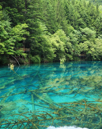 想象描述:站在五花海旁,仿佛置身于童话世界,湖水在阳光下闪烁着五彩的光芒,周围的森林如同翡翠般碧绿,令人心旷神怡。