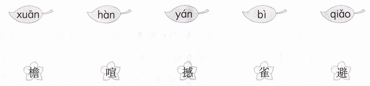xuān-喧;hàn-撼;yán-檐;bì-避;qiǎo-雀