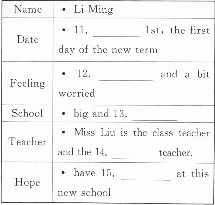 (三)听下面一段独白,完成下面的表格,每空一词。听独白前,你有 20 秒钟的时间阅读各个小题。独白读两遍。(10 分)
