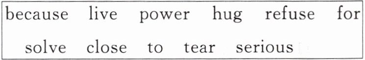 1. close 2. serious 3. live 4. refused 5. solve 6. for 7. tears 8. because 9. to hug 10. power