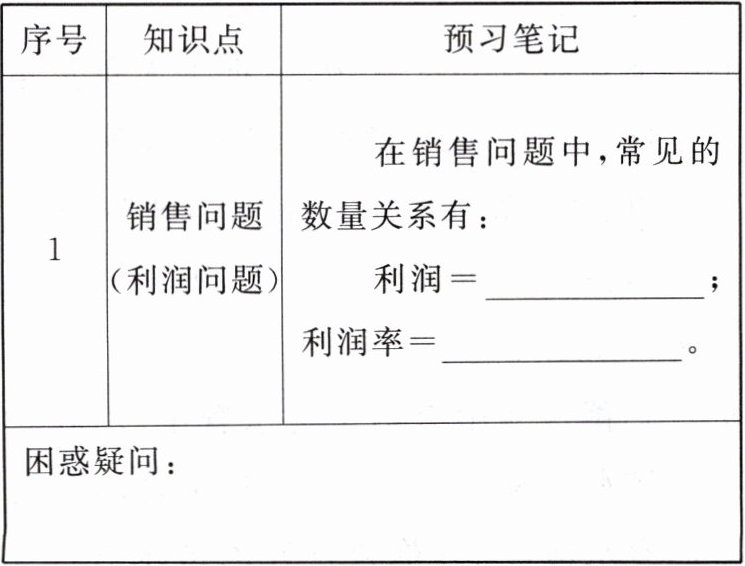 利润=商品售价-商品进价 利润=利润率×商品进价