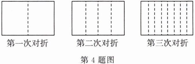 4. 如图,将一张长方形的纸对折,对折1次可得到1条折痕(图中虚线),连续对折3次(对折时每次折痕与上次折痕保持平行),可以得到7条折痕;那么连续对折5次后,可以得到的折痕的条数是(