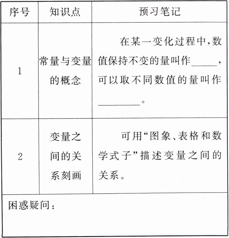 在同一个变化过程中,常量是固定不变的量,变量是不断变化的量。