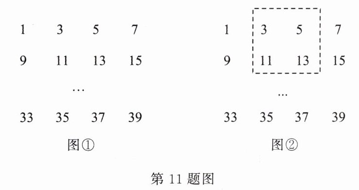 11. 如图,将连续的奇数 1,3,5,7,9,…,39,排成数阵。