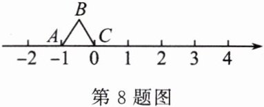 8. 如图,等边三角形的边长为$1$,点$C$与原点重合,现将等边三角形向右翻转$10$次,求点$B$在数轴上对应的数字。