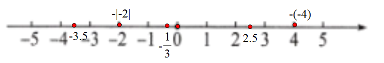 $-3.5<-|-2|<-\frac{1}{3}<0<2.5<-(-4)$ 数轴如图所示