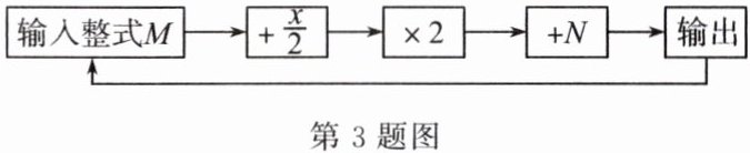 3. 一台整式转化器原理如图,开始时输入关于$x的整式M$,当$M = 2x + 1$时,第一次输出$4x + 1$,继续下去,则第3次输出的结果是(