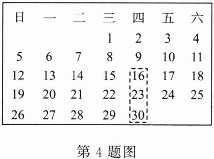 4. (多选)如图,在月历表中,任意框出表中竖列上三个相邻的数,这三个数的和不可能是(