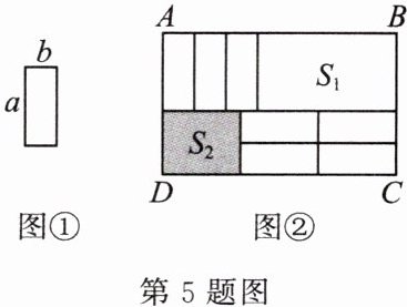 (3) 7张如图①的小长方形,长为$a$,宽为$b$,按照图②方式不重叠地放在大长方形$ABCD$内,大长方形中未被覆盖的两个部分都是长方形。设右上角的面积为$S_{1}$,左下角的面积为$S_{2}$,当$AB$的长变化时,$S_{1} - S_{2}$的值始终保持不变,求$a与b$的等量关系。