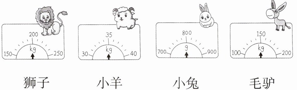 (2)按从重到轻的顺序给动物们排排队。