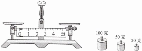 4. 如图,现有一架天平和3个砝码,怎样称出130克的淀粉?