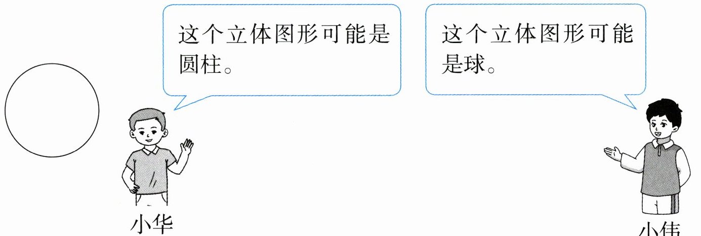 (1)小华和小伟说的都对,因为圆柱和球都能观察到圆。(2)他可能用了圆柱和长方体(答案不唯一)