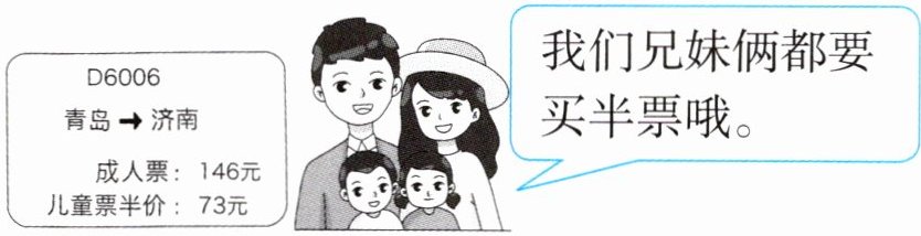 4. 小华一家乘D6006次动车从青岛到济南,他们一家买票共需要多少钱?