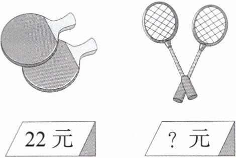 5. 一副羽毛球拍的价钱比一副乒乓球拍的4倍少8元,一副羽毛球拍多少钱?买5副羽毛球拍要花多少钱?