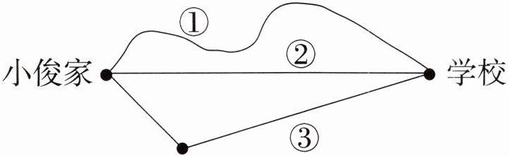 4. 如图,从小俊家到学校有三条路可走,小俊走路线 ( ) 最近。
