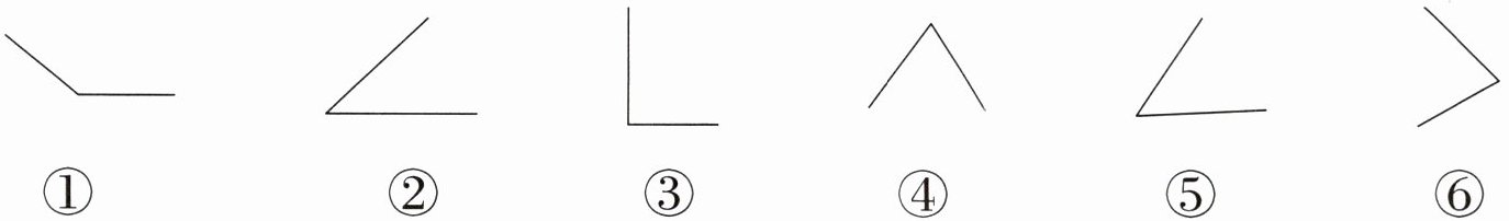 6. 数一数,下面图形中,有( )个直角,( )个锐角,( )个钝角。