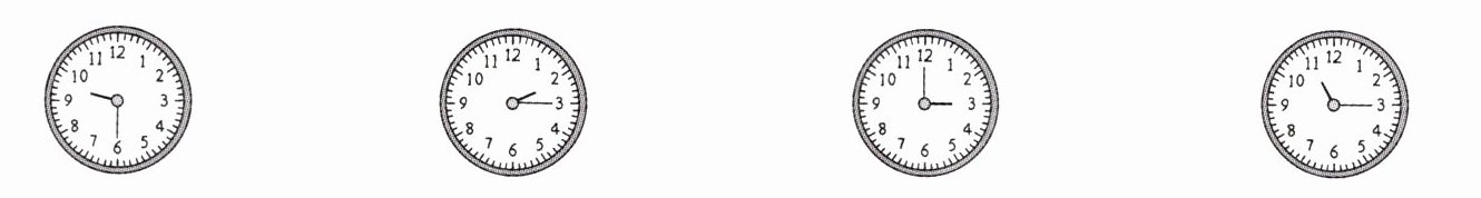 2. 如图,在下面钟面上,时针和分针形成的角分别是什么角?