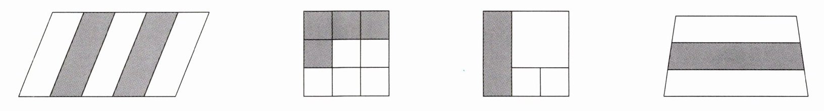 3. 画出下面每个图形的$\dfrac{1}{4}$,并涂上颜色。
