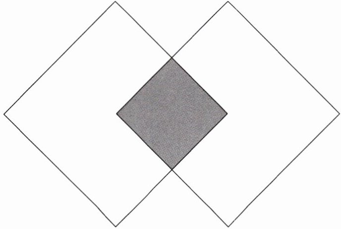 7. 如图,有两个同样大小的正方形,它们的$\dfrac{1}{4}$重叠在一起,重叠部分是一个小正方形,重叠部分占整个图形的$\dfrac{( )}{( )}$。