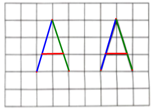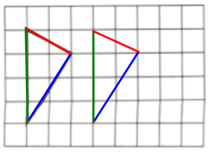 3. 画出平移后的图形,找到互相平行的线段,并用不同的颜色描出来。
